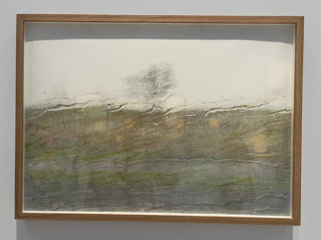 La merveille de Zhu Hong plonge le spectateur dans l’incrédulité et dans les souvenirs d’enfance. Comment ça ce n’est pas une photographie ? Ainsi l’aquarelle et les crayons de couleur peuvent faire illusion et faire ressurgir les souvenirs d’ennui des trajets trop longs par temps pluvieux. Il en est de la peinture comme de la psychothérapie, c’est souvent un détail qui fait ressurgir un souvenir.